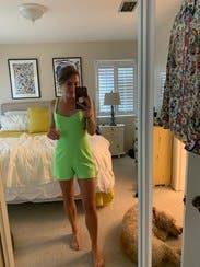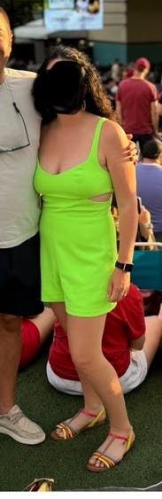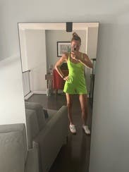 Ok outfit, nothing to brag about. I imagined it would be lime green, bit it sure isn't. It is very much neon green/yellow. Not very flattering either, I got size 4 which is what I normally wear and it was kind of baggy and didn't complement my body.