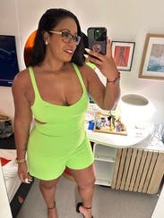 This romper was so amazing. The color was bright and vibrant and perfect for Las Vegas. I'm definitely going to rent it again for my Miami trip. I have a large bust so I couldn't wear a bra, but it was OK because everything stayed in place without one. The only downside to this outfit is that the front rides up in the crotch and the straps fall down if the romper is not pull down correctly. Other than that super comfortable and stretchy, wore this outfit to a nightclub.