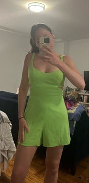 If you are 5'8 and up and wish you could wear all the cute rompers the more petite ladies do THIS is the one for you! The shorts were actually an appropriate length and didn't ride up. The straps were perfect. And that lime green? LOVE!!!