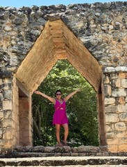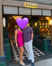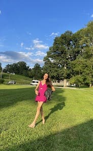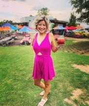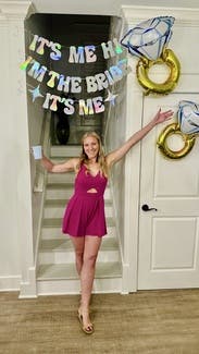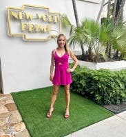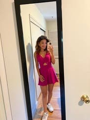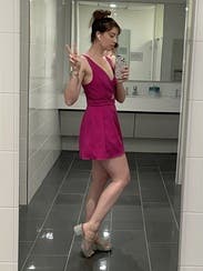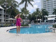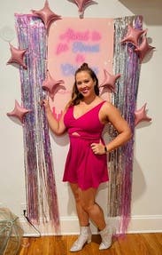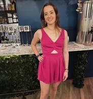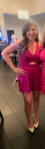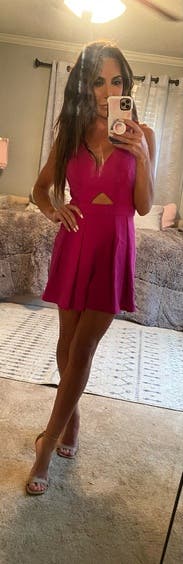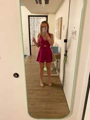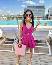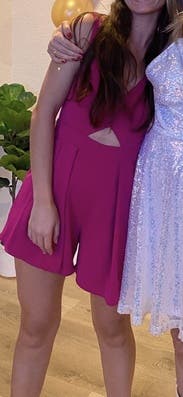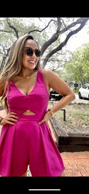 Wore on my bachelorette weekend. It's a fun, hot pink romper and fits true to size