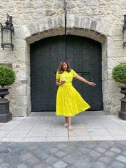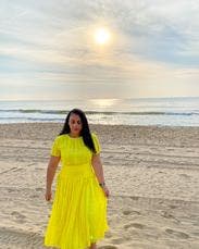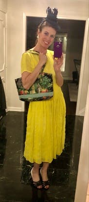 Well, someone said I looked like Belle, so I'm sold! Seriously, love the color. Got the big yellow Lele earring to match but they were a different yellow. This dress is very bright and fun!