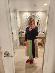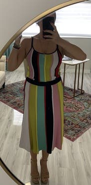 This one caught people’s eye; lots of compliments! I’m between a 4/6 and the small fit well. It’s more fitted at the top so if you’re looking for a true A-line look, size up. Was easy to dress up for work or down with a t-shirt.