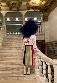 I'm always on the look-out for fun, chic, sophisticated pieces that pop on camera and look good while seated for The Vibe Hacking Show, and this skirt did not disappoint! It's quite bold and I turned lots of heads while out and about....but I'm not sure if that's because it was soooo bright and erring on the the clownish side? But it was perfect for the talk show. Definitely not the item you want if you're looking to blend in ;)