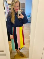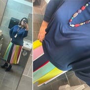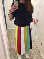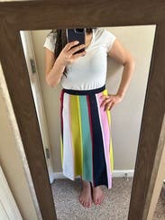 The colors are bright and fun. The length is perfect. Can be worn with lots of different tops. Definitely worth renting!