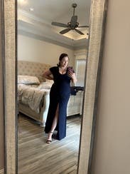 Compliments all night long! I could wear a regular bra under it and the roughing makes it very flattering. The split made it sexy but wasn’t overwhelming when standing or sitting at a table. It was easy to dance in asd well.