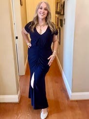 I wasn't planning to use RTR for the gala event we attended, but took a leap of faith thanks to the pics posted in the reviews. Which is why I'm posting. I felt VERY confident in this look. And like a woman, not a girl dressing up. Or matronly which can happen with my body type. The slit in the front was a bit higher than anticipated. My friends and spouse assured me there was nothing too revealing. I felt secure with the gold wrap, that really helped it come together!!