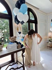 The Jewel x Badgley Mischka V-Neck Halter Dress offers a flattering silhouette with a tie-back closure, making it an ideal choice for spring and summer events. Pair it with strappy heels and delicate jewelry for a polished look.
