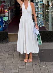 White (100% Nylon). Casual dress. Halter neck. Sleeveless. Tie closure. Shoulder to hemline: 53". Imported.