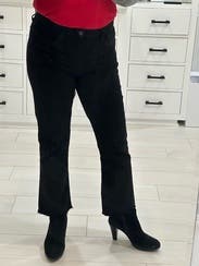 These have a frayed end, so definitely a bit more of a casual black pant, but they are comfy and fit great. Almost kept them!