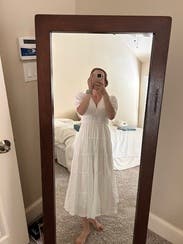 I’d size down for this beauty! I got so many compliments at church and felt like a dream. Pockets and elastic waist! Will rent again!!