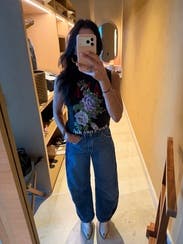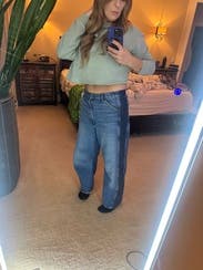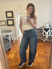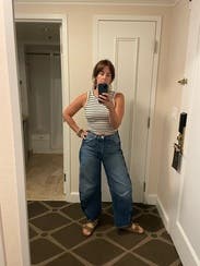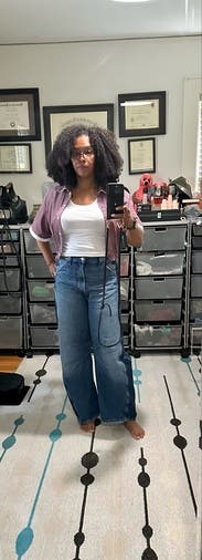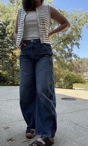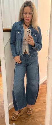 I typically am leery of jeans without trying them on, but I took a chance. I honestly love these jeans and the denim stripe detailing. First time getting a barrel style jean and I’m a fan! Great fit!
