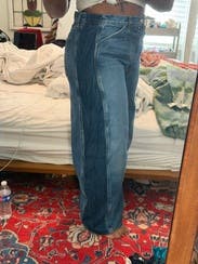 And i don’t hate it. Jeans are high quality, structured, with a dark panel inseam that i really like and add contour. these work on my body (big butt) as a baggy jean, and i have worn them almost every day since they came. will be tough to return these!