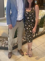 Wore this dress to work and then out to dinner with friends after. A great dress you could dress up or down, I paired with brown sandals, gold hoops and a denim jacket in the office, then ditched the jacket for dinner. I would recommend sizing down in this dress. It's supposed to be form-fitting, and I felt as though it was a little loose around the bust area and where it cut off at the knees. Highly recommend!