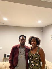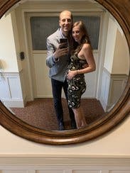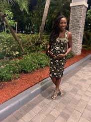 I loved this! Wore it at 32 weeks pregnant and didn't have to size up bc it's super stretchy. Be aware - it'll seem too tight and impossible to get on but once you do it fits nice and snug (without being uncomfortable). Will rent again.