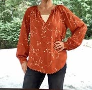 This blouse had beautiful stitching on the bottom. The color was beautiful and perfect for fall.
