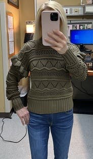 Loved this cute sweater- especially the sleeves! FYI- It's actually green and not brown.