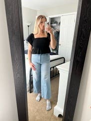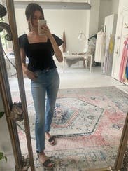 This top was perfect for pairing with high-waisted jeans for a day outing. It was comfortable and sat nicely on my shoulders and didn't slide down. The ruching was a nice detail and it hit my waist at a flattering angle.