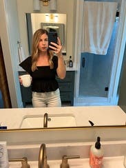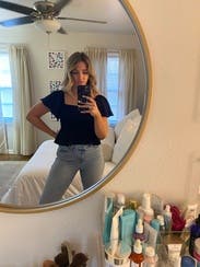 Looooove this top! So cute and surprisingly comfortable and stretchy. When I first took it out of the bag I panicked at how tiny it looked, but don't worry, it stretches out when you put it on! I wore it out with the girls one night and also out to brunch. If you don't want your belly to show, I definitely recommend wearing high waisted jeans. I usually wear a small in tops, and needed to size up to a medium for this one:)