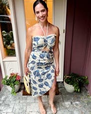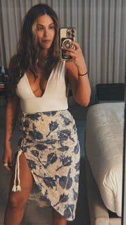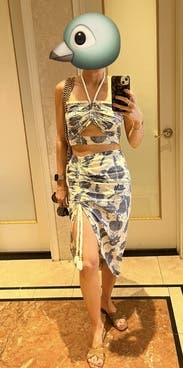 The perfect set for a beach vacation! I wore this to Cabo and got so many compliments! The waist runs a little big depending on how high you pull up the skirt, but the top and side slit of the skirt were so flattering it made me forget about the waistline. :) Definitely rent this for your next beach getaway! I felt sex and sun-kissed!