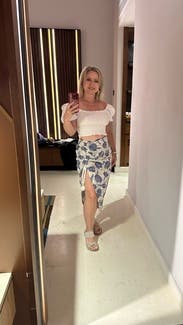 I ordered the matching set for vacation in the Bahamas but they only had XL in the top so it was comically large. Ended up wearing the skirt on its own. It was great and fit well but the slit is very high for me to wear it most places besides vacation. Was fun for a tropical date night out!