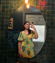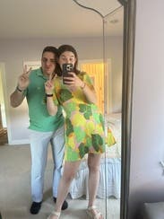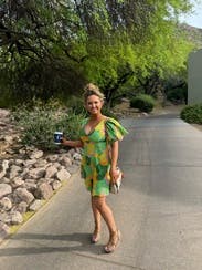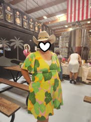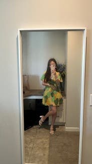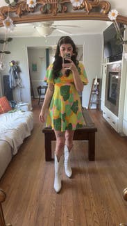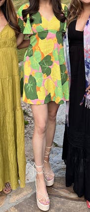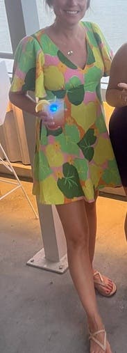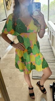 Wore this to a Palm Springs pre wedding cocktail hour. Very cute, bright, fun, and colorful. May recommend for smaller chested individuals like me as the chest area is a bit more snug.