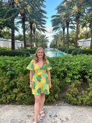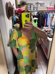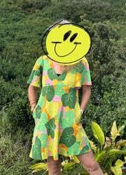 I loved this dress! The bright colors are so fun and I like the material. It was a bit tight on my chest area and I have a small chest (glad I had the size I did but wouldn’t have gone tighter) so I don’t recommend sizing down, or if you have a larger chest you may need to size up