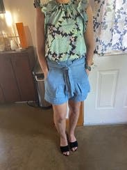 Love this top! Super light. Fun details for your online meetings. Paired it with some shorts from RTR. Hit the winery right after my work day- perfect!