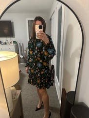 Wore this to the theater on a cool fall night and it was just the thing. The print is a little autumnal in my opinion and the fit is easy and pretty.