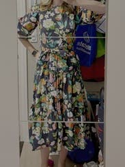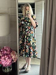 This was a very loud and bright print but I loved it! The dress was really comfortable and flattering. At almost 34 weeks pregnant the waistband was a tad tight but this is a great bump option. I will definitely rent post pregnancy at a size down.