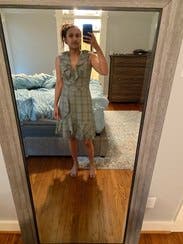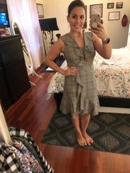 This dress has a ruffle on either side of the top- the one I received is missing a few stitches attaching part of the ruffle on one side. This didn't really bother me. While the dress is cute, I think I should have sized down for a more flattering look because the A line cut is forgiving in the hips and legs.