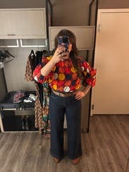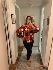 This top is the bomb! It is bright and bold, so if you are wanting to blend in with the surroundings, this is not the shirt for you! However, if you want fun and hope to receive lots of compliments, this is your go-to! I seriously considered buying it! I sized down to a small and it was perfect!
