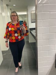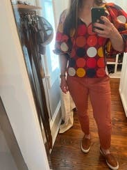 Seriously, you cannot wear this shirt without being filled with joy...even the people around me were happy! I wore this for three different occasions--a girl's night out in Chicago, at a board meeting, and for a presentation during an event (yes, I used a circle theme in my presentation!). It's comfortable, fun, colorful, lightweight, and simply delight. It didn't photograph all that well, but who cares about photos when your smiling inside and out :)