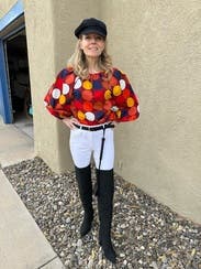 Vibrant colors on cotton. Puffy sleeves make a bigger statement with the dots. Unique symmetry throughout the top.