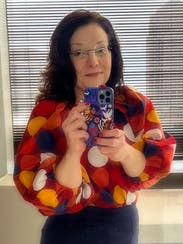I really liked this top. I love the bold colors. My son told me I should buy it. I’ve worn it to church work and the night out. Material is thick. My only complaint is that the bottom curls up. The elastic in the arms, you can move the sleeves up or down to make them more or less puffy.