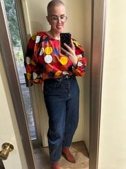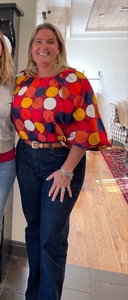 I may have been better to size down but a fun top, vibrant colors but not the most flattering.