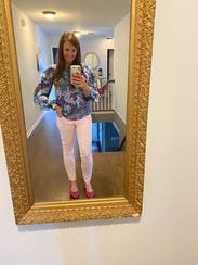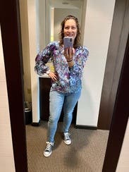 The colors in this top were beautiful! I loved the flounce on the sleeves. Got so many compliments
