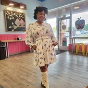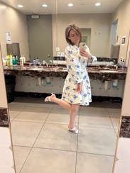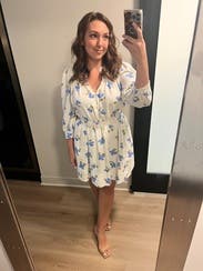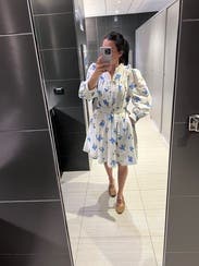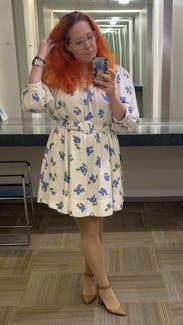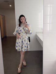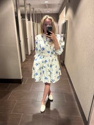 Got so many compliments on this dress! The belt makes it look so chic. The flowers are a perfect blue. Everything about it is a yes!