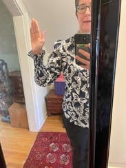 I am not ruffly and this felt girly. But somehow I didn’t care. It fit well. Didn’t wrinkle. Fun print.