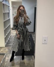 Kate spade makes a great work dress! I was a little worried i wouldn’t love the stripes that it would be too busy but i really loved this dress. Was flattering and comfortable. Overall fit great and I would say I probably sized up in this to accommodate by 16 week bump.