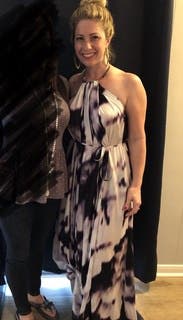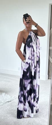 Incredibly beautiful, comfortable, flowy dress. Since it's not fitted, I added a belt to it to make it less of a mumu. Perfect for social distancing cocktail hour with my neighbors!!