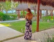 Fun, flouncy dress for a night out in Mexico. This picture made me realize I needed to wear a strapless bra. Dress is not meant to tie in the front but I was swimming in a colorful potato sack otherwise. I should have sized down!
