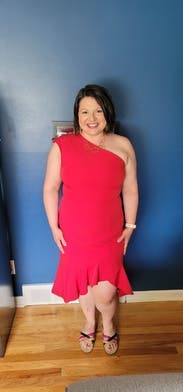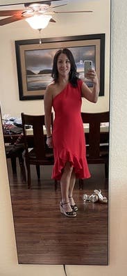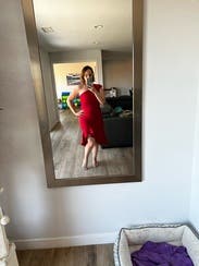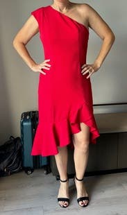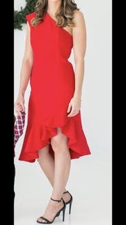 Lovely fitting dress in a striking red. Perfect for my husband's a Christmas party