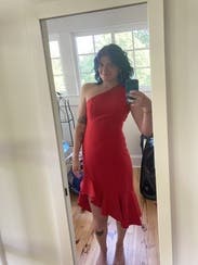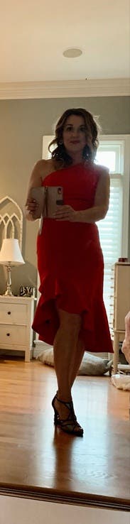 I now get all the flaminco emoji comments. 💃. The dress fits well and flows nicely. The top is tighter if your are bigger chested. I’m a size 2 and ended up wearing the small. The dress was very comfortable and a little sexy but still great for my work Christmas party. It’s a good red color (blue red, not orange red). You could get away with no bra but I was a little nippy so I used breast petals and they worked perfectly. A bra might not fit too well if padded. I would definitely rent this again.