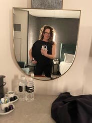 I enjoyed wearing this shirt more than I thought I would. It was very comfortable. My only issue was that my bra straps would occasionally show. This might not have happened if I had a medium instead of a large.