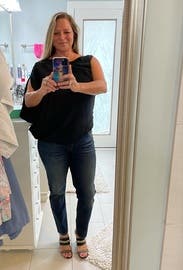 Loved this top. I paired it with jeans and heels. Fit TTS