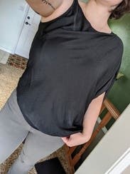 This was a very easy shirt to wear. Liked the one-shoulder look to step up a normal black shirt.