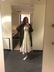 It goes with everything, jeans, leggings, skirts, dresses. It's a great layering piece.