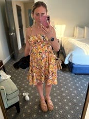 Had an adorable ruffle around the bust. Also loved the adjustable ties straps.