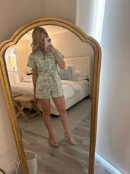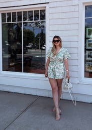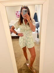 This is such a great romper and versatile. The fabric is soft and the pattern is understated enough to allow you to pair with cute sneakers for casual stuff or you can take it up a few notches with heels. I’ve worn it twice for girls dinners - once more casual and the other a little more dressed up. It does pull in the chest a bit for me - I used fashion tape to help out. Others have mentioned that it was short for them - those are the reviews where I know the length will be perfect for my short legs and this one fit just right.