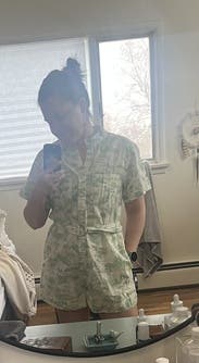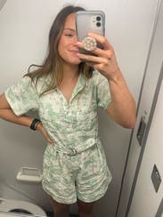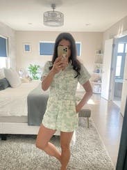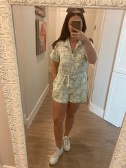 This romper was very comfortable and flattering however I have a longer torso so the shorts part was a little small. Loved the color and pattern and it was easy to style!